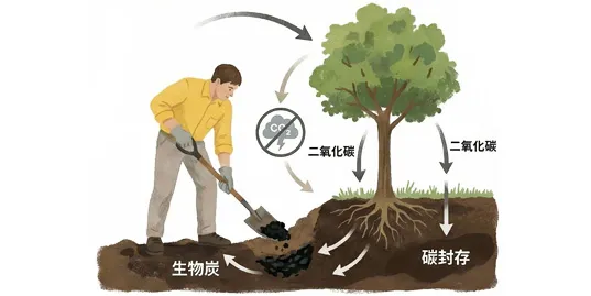 生物炭能長期穩定鎖碳於土壤中,減少溫室氣體排放,具明顯的碳封存與減碳效益。
