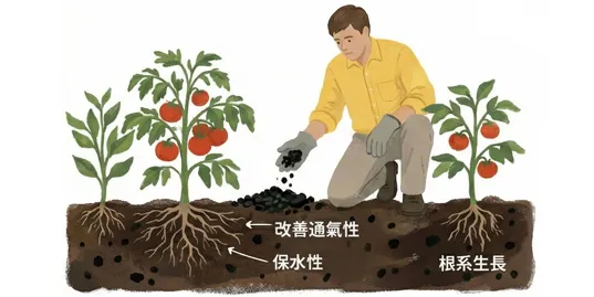 其多孔結構能提升土壤通氣性、保水保肥力,改善酸性土壤,促進作物根系生長。